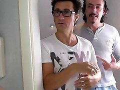 Kinky ash-blonde enjoys working on two weiners indoors