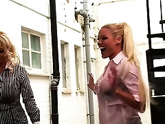 Busty femdom milfs flashing tits for dude
