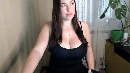 Dark-haired with humungous and innate bra-stuffers gropes herself