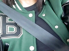 Flashing my big breasts and yam-sized ass on dashcam and getting facial