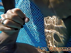 Milf Fucked in all positions in the pool, huge faux-cock and handjob underwater