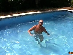 Blonde Unexperienced Granny Beta Sucks Fat Cock By The Pool