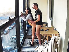 Busty Teenie in Hot Smoking Action on the Balcony